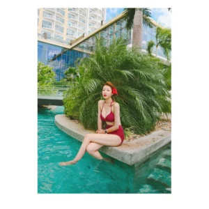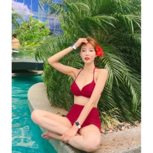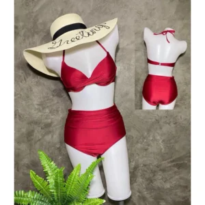บิกินี่เซ็ต 2 ชิ้นเสื้อสายเดี่ยวผูกคอ กางเกงขาสั้น(สีแดง) Lady ผู้หญิง Women