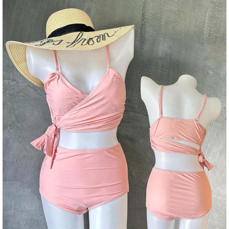 บิกินี่เซ็ต 2 ชิ้น เสื้อผูกสองข้างสายเดี่ยว กางเกงขาสั้น(สีชมพูนม) ผู้หญิง Lady