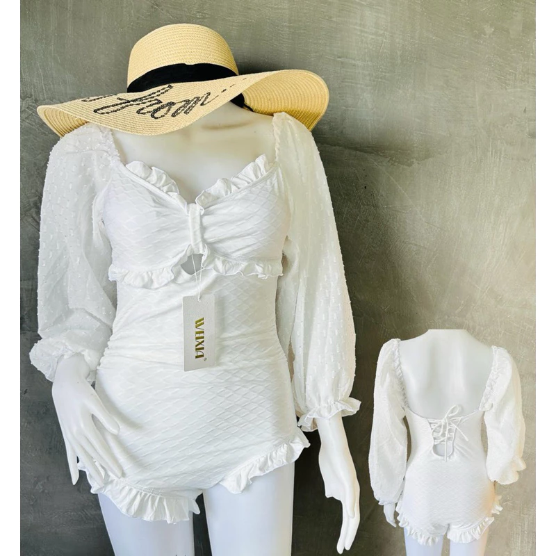 👙 บิกินี่สีขาวแขนยาว มีเชือกผูกหลัง Lady ผู้หญิง Women