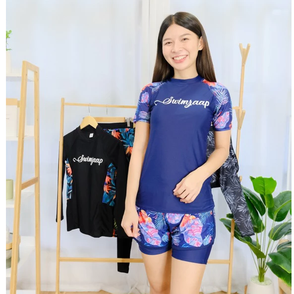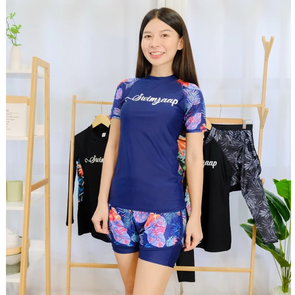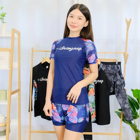 💦 ชุดว่ายน้ำผู้หญิง A013 สไตล์สปอร์ต แขนสั้น ขาสั้น